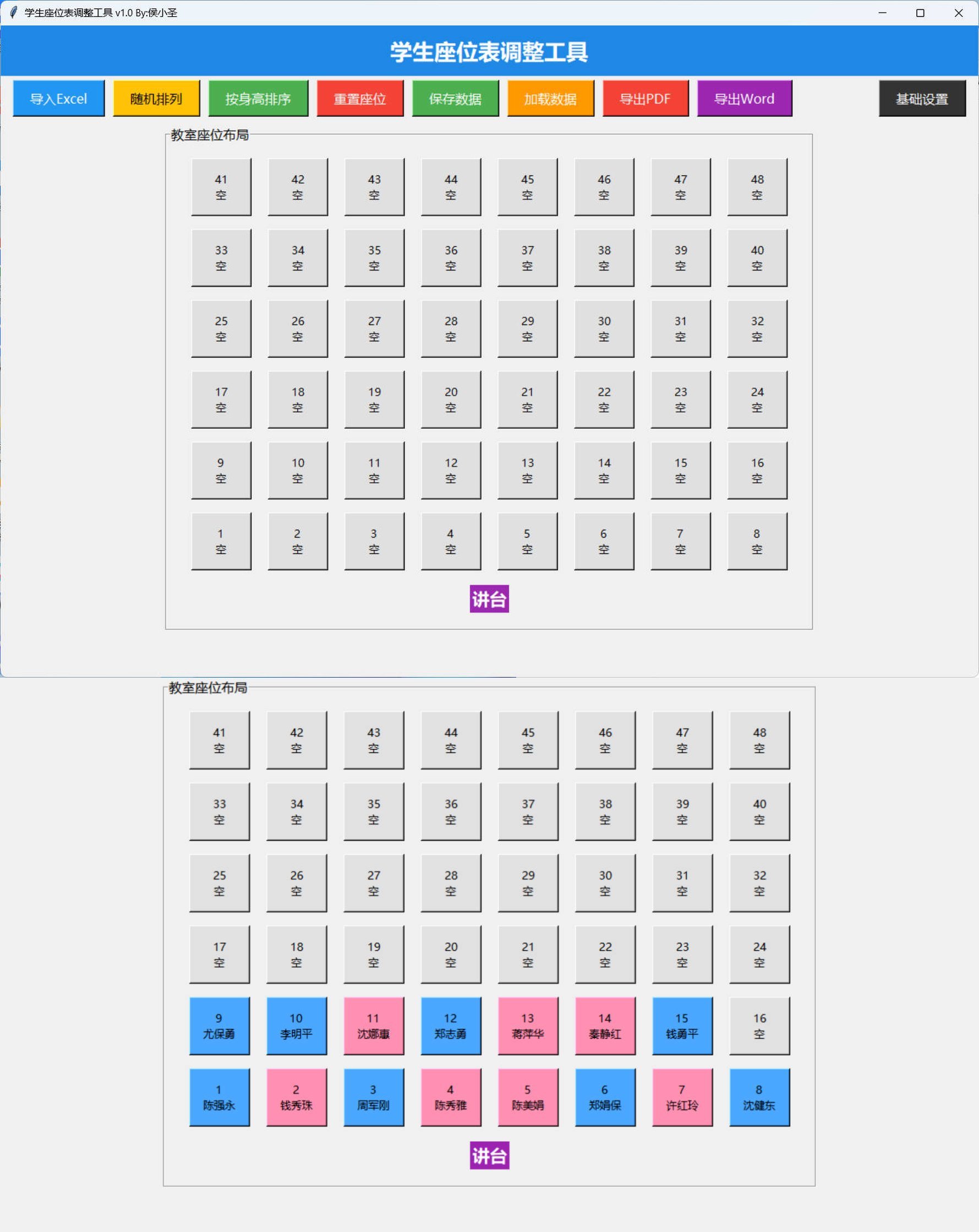 又到了一年一度高一分科的时候,搞一个座位调整的工具
